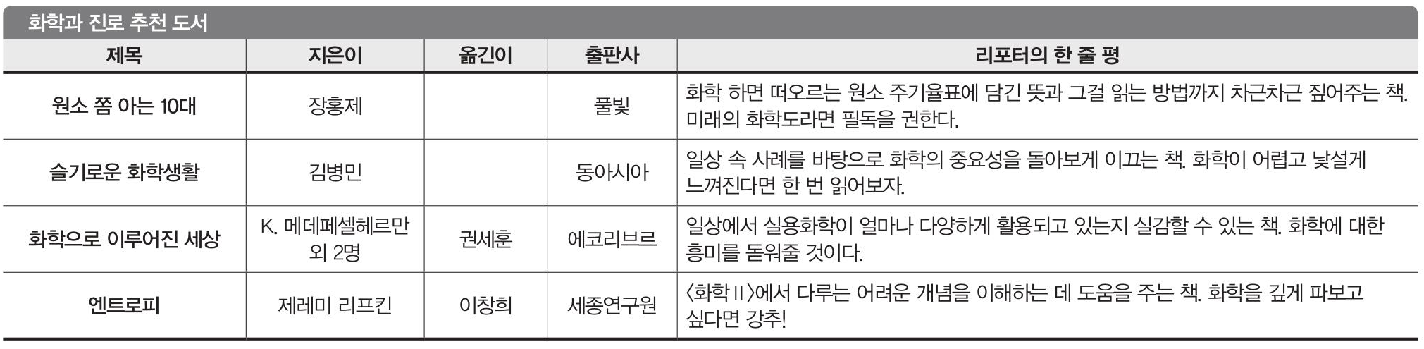 “<원소가 뭐길래> <과학, 일시정지> 추천해요”