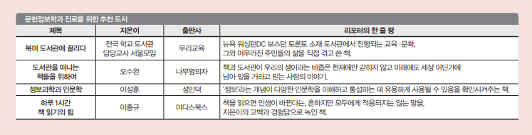 정보를 문헌에서 찾을 수도 있지만 폭넓은 분야에서 습득하는 것을 선호하기 때문에 교수님들도 다양한 분야의 책을 읽으라고 하세요. 저는 사서를 희망하기에 관련 분야의 책이 도움이 됐죠.